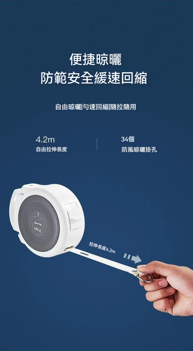 這款伸縮隱形晾衣繩,最長可伸拉4.2米