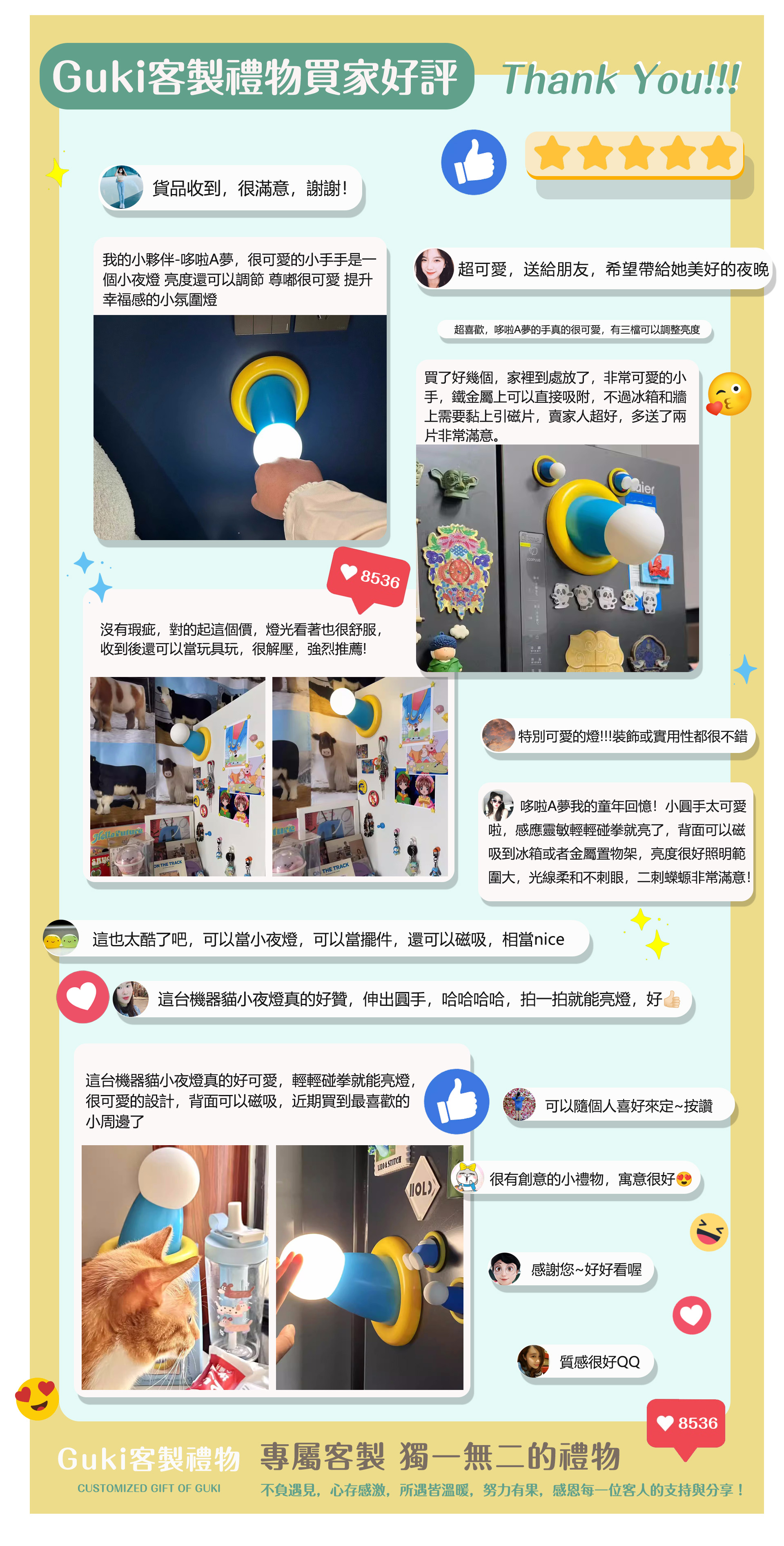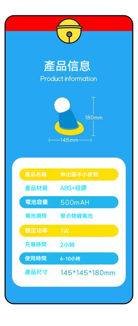 伸出圓手小夜燈,卡通創意禮物包裝+卡通禮袋+客製化照片相框 代寫卡通賀卡
