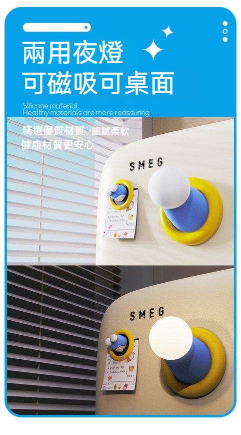 🔥 🔥藍胖子伸出圓手可愛小夜燈-床頭臥室磁吸小擺飾定時伴睡燈