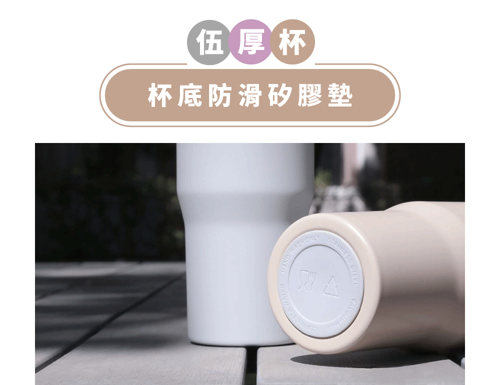 ▲杯底防滑矽膠墊設計,減少放置桌面所產生的噪音,並保護杯底避免刮傷