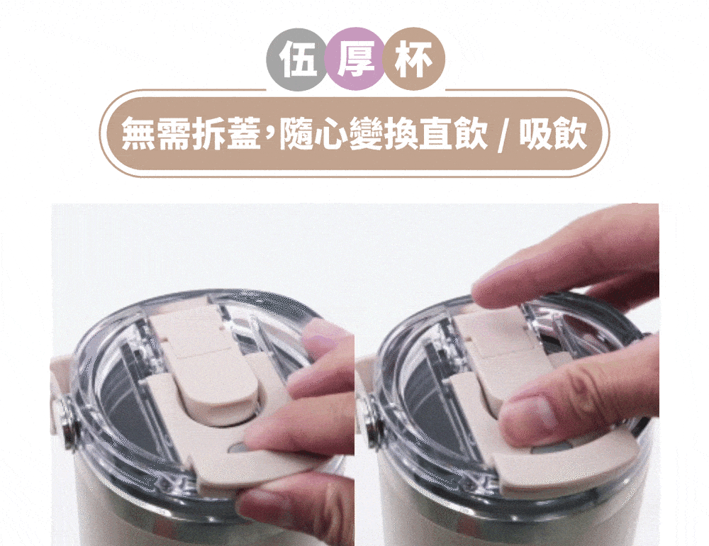 ▲外出時翻蓋止水設計,日常戶外晃動,飲品都不易溢出