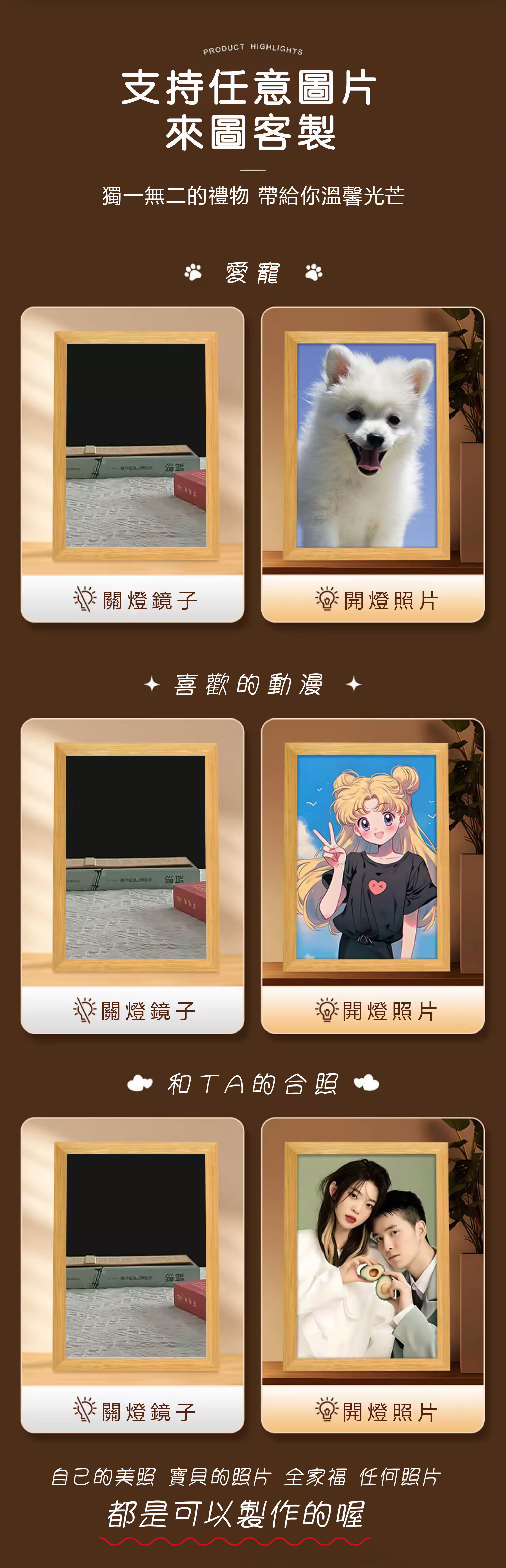 🌞日間係一面型格裝飾鏡 🌙夜晚變身溫馨氣氛燈無論係情侶合照、寵物萌樣定BB成長記錄用光影將你最愛嘅畫面 變成屋企最耀眼嘅打卡位!