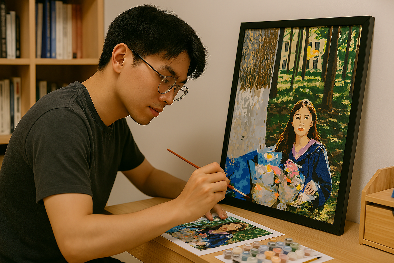 ✅ 手指拗拗就畫到(連手殘黨都搞得掂!)✅ 高清印刷+專業調色,還原甜蜜瞬間✅ 送木框+顏料套裝,直掛屋企做愛情見證💕